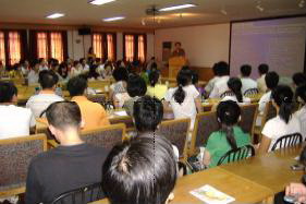 2007年9月13日下午1:30,食品学院2007级研究生新生迎新座谈会在学校图书馆二楼学术报告厅隆重举行。座谈会由食品学院副院长谢晶教授主持。食品学院院长王锡昌教授、党委书记陈江华,以及研究生导师代表、研究生辅导员、研究生秘书、研究生会成员、2007级研究生新生等参加了这次座谈会。