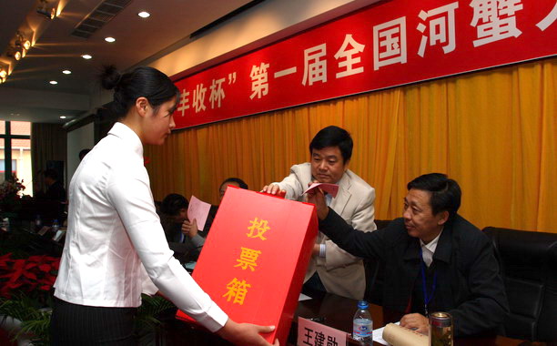 本次大赛坚持公正、公平、公开原则,实行评比办法公开,评比标准公开,评比专家组人员公开。经江西省水产局局长官少飞、安徽省水产局副局长王建勋、江苏省海洋与渔业局魏绍芬研究员、上海水产研究所所长戴祥庆、江苏省淡水水产研究所周刚研究员及我校王武、李思发教授组成的评委会认真测评,共评出蟹王、蟹后、及金蟹奖各1名、银蟹奖2名,铜蟹奖3名以及优胜奖。江苏水仙实业有限公司选送的“宝应湖”号牌河蟹获金蟹奖,银奖分别由江苏高淳县固城湖管委会选送的“固城湖牌”、江西进贤军山湖鱼蟹开发公司选送的“军山湖”牌摘得,铜蟹奖由安徽望江武昌湖生态渔业有限公司选送的“武昌湖”牌、安徽枞阳钱叶武选送的“白荡湖”牌、以及江西进贤皖赣特种水产有限公司选送的“军山湖”牌河蟹获得,上海海岛蟹业公司等12家单位及个人选送的河蟹获优胜奖。