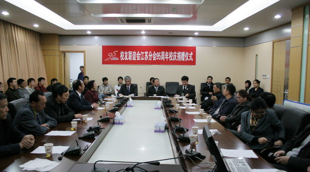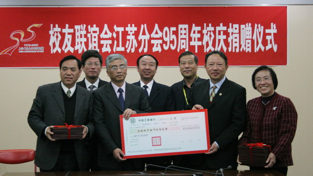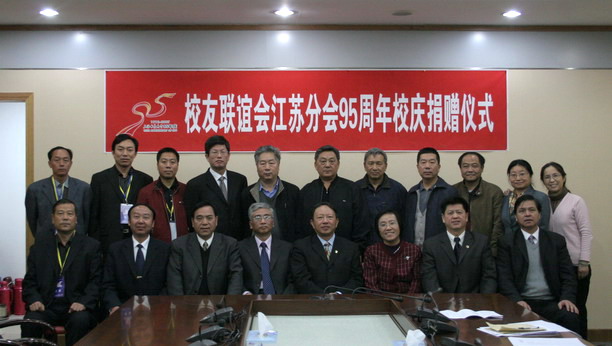 上海水产大学校友(联谊)会江苏分会在南京成立,江苏分会秘书处设在江苏省水产技术推广站。会上,选举我校1978届淡水渔业专业、江苏省海洋与渔业局副局长唐庆宁学长为会长,副会长为魏绍芬学长(1968届海水养殖专业)、帅国良学长(1970届工业捕鱼专业),江苏省水产技术推广站副站长晁祥飞学长(1980届淡水渔业专业)为秘书长。此次校友联谊会江苏分会的广大校友们纷纷为母校无私捐款,共向母校捐赠38万余元,为母校的新校区建设添砖加瓦。校检审办主任、校庆捐资组组长王国华主持了捐赠仪式,并宣读捐款单位和校友名单。仪式结束后,校领导与校友联谊会江苏分会与会校友们欣然合影留念。