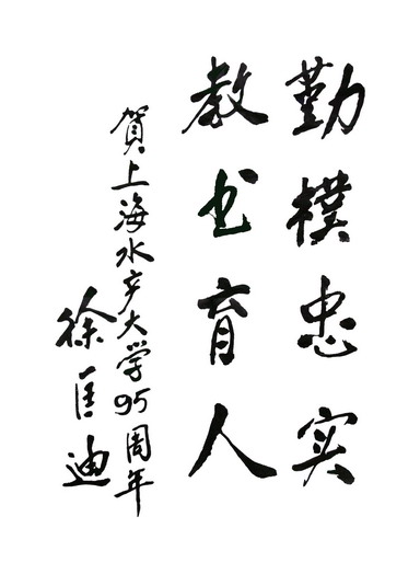 在校庆庆典的钟声即将敲响之际,全国政协副主席、中国工程院院长徐匡迪院士为我校欣然命笔题词:“勤朴忠实,教书育人”,祝贺我校建校九十五周年。