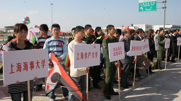 入驻临港新城的18家单位组团参加了本次风筝比赛,上海海事大学也组建了风筝队参赛,近百名学生也参与活动。我校外国语学院党委副书记戴辉明率校大学生风筝协会六名学生刻苦训练,配合默契,在比赛中表现出色,荣获团体组织奖和个人二等奖的良好成绩。南汇区人大副主任郑时芬、副区长吴力坚等出席活动,并为优胜者颁奖。