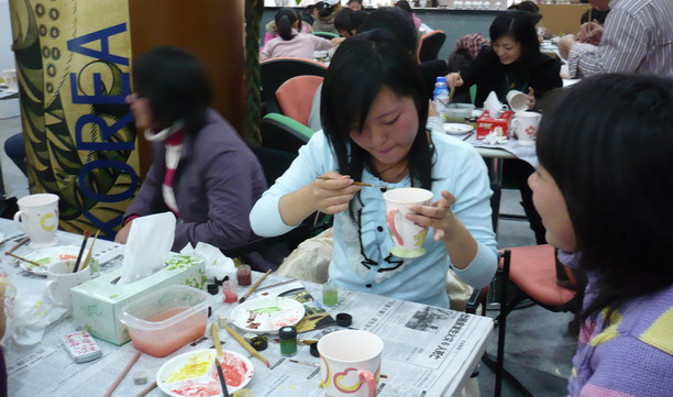 在讲解员的带领下,同学们兴高采烈地参观了文化处的政府纪念厅,图书馆,韩语角,多功能厅等,并亲身体验韩国游戏,在被眼前多彩的韩国文化所吸引的同时也加深了对韩国历史和文化的了解。同学们和韩国朋友一起来到手工制作室,在专业老师的指导下,每个人都制作了一份精美的陶瓷作品,将整个活动推向高潮。