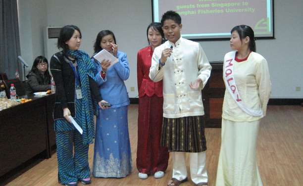 此次交流学生来访我校,主要是为介绍新加坡,参观上海高校,增进两国友谊为主旨。访问交流中,双方分别介绍了新加坡和各自的校园生活和地方特色。同时新加坡学生为大家带来了耳目一新的民族服装展示、特色舞蹈以及民族特色食物、装饰等节目。生命学院的同学为客人表演了特色节目,悠扬赏心的长笛演奏、刚柔并进的太极拳、国粹京剧演唱以及那带动起大家气氛的英文歌曲演唱深深打动了新加坡学子。随后13名交流学生参观我校的水生生物馆与鲸馆,以展示我校的办学特色。大家一起欢快的留影为此次交流访问画上了句号。