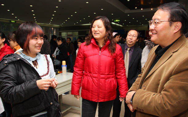 潘迎捷校长与四次献血的吴缇同学亲切交谈