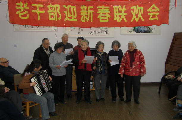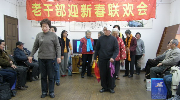 联欢会以老干部自娱自乐为主,邀请了我校东方老年艺术团舞蹈队的老师以及青年大学生前来助兴。丰富多彩的节目既让老干部们饱了眼福,也让老干部们充分施展了自己的特长与才华。在众多的节目中,有国粹京剧清唱,也有时尚流行歌曲演唱;有雅俗共赏的口技和寓言故事,也有激情奔放的舞蹈表演。尤其是由山东籍老干部献唱的山东民歌《沂蒙山小调》和部分老干部表演的东北秧歌舞,更是把联欢会推向了高潮,台上台下热闹异常,掌声、笑声、此起彼伏,老干部们完全忘了自己已经到了耄耋之年,他们的脸上堆满了笑容和幸福,整个联欢会沉浸在一片欢乐的海洋之中。