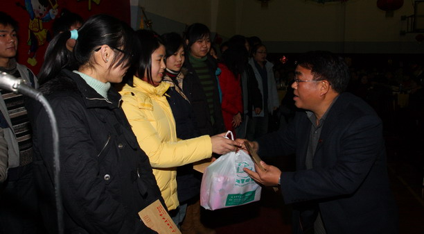 今年我校留校学生有330多人,学校认真安排好他们的学习生活和实践,今年继续实行“六个一”工程,有红包、年货大礼包、电话亲情卡、勤工助学岗位、电影票、就餐券等,在精神方面和物质方面都给予留校学生充分的关心和爱护,让留校学生度过一个充实而又幸福的春节。