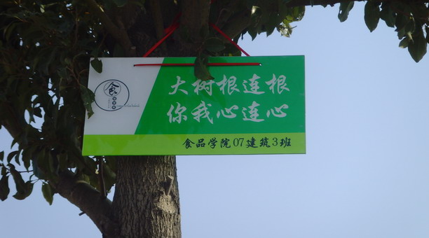 艳阳高照,春风和煦。3月11日,我国第30个植树节到来之际,食品学院组织07级新生代表到临港新校区开展植树节活动。在辅导员的带领下,参加活动的食品学院07级热能专业、建筑专业和食安专业的学生代表140余人,以班级为单位认领了临港新校区在建的食品学院群楼后面的7颗樟树。同学们把自己对环保的身体力行和对学校新校区及学校发展的美好愿景融进了特别制作的挂牌上。“厚德博学,励志笃行”、“多一片绿叶,多一片温馨”、“育参天大树,造栋梁之才”、“大树根连根,你我心连心”等一句句朴实无华却又饱含同学们祝福的话语萦绕在美丽的新校区校园。