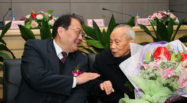 校长潘迎捷代表学校对骆先生及其家人和弟子的义举表示由衷的感谢和敬意。他在讲话中强调了创新对社会发展以及高校自身发展的重大意义,介绍了我校大学生创新教育与创新活动的基本情况,强调要持续深入地做好大学生创新教育。他进一步指出:科技创新基金的成立,一改目前高校奖学金的“普惠制”,引入竞争意识,这在我校的奖学历史上是绝无仅有的,对引导学生研究型学习具有深远的意义。同时,感佩骆老献身水产事业,以96岁高寿仍然心系食品工业,关怀后进学子,为高等教育无私奉献的精神,潘迎捷校长对各位校友尊师爱校、捐资助学的高尚情操给予了高度评价;最后,潘校长代表学校祝福骆老健康愉快,希望骆老作为水大的同龄人,在学校100周年校庆的舞台上再展风彩。