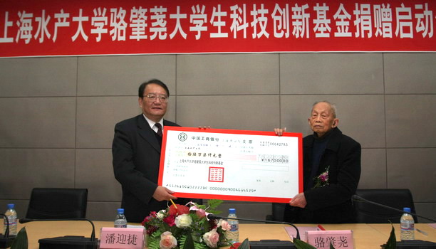 4月2日上午,经骆肇荛先生弟子发起,由先生本人及其弟子、食品学院部分教工捐资,学校批准成立的“上海水产大学骆肇荛大学生科技创新基金”捐赠启动仪式在科技大楼隆重举行。骆肇荛先生及其弟子代表,学校离退休老干部、老同志、老教师代表,相关职能部门负责人,学生代表出席了仪式。启动仪式由校长助理吴建农主持。