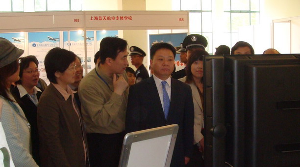 展览期间,上海市副市长沈晓明,上海市政协副主席钱景林等市领导,市科教党委书记李宣海、市教委主任薛明扬等教育系统领导,分别到我校展位参观、指导。潘迎捷校长百忙之中也赶到现场慰问我校工作人员。校党委副书记、副校长黄晞建亲临现场,热情接待众多观众咨询。在我校展位前,参观的观众络绎不绝,纷纷索取资料,问这问那,忙得工作人员应接不暇。宣传资料供不应求,学生和教师说得喉咙都哑了,但大家心里乐滋滋的。此次展览由我校宣传部牵头,校办和招生与就业办公室共同组织,旨在向社会介绍我校百年办学底蕴,展示上海海洋高等教育的综合实力和美好憧憬。