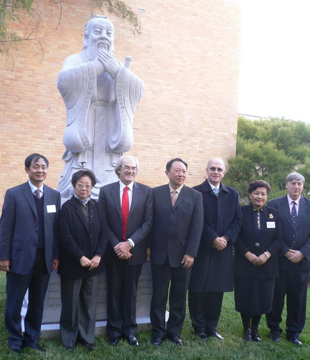 四月底的天气,在塔斯马尼亚已是深秋,岛上飘着丝丝寒意。可揭幕典礼当天下午,雨霁天晴,温暖的阳光洒满校园,给揭幕典礼增添了光彩。各方代表作了简短的讲话,然后大家步行到图书馆前,瞻仰了孔子塑像并合影留念。整个仪式隆重简朴。