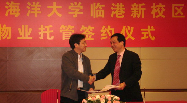 根据后勤社会化改革的方向和临港新校区的实际情况,经公开招标,日前封金章副校长代表我校与上海紫泰物业管理有限公司总经理夏亚伟正式签署新校区物业托管协议。