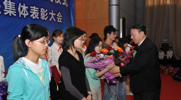 5月13日下午,我校2008年奖学金颁奖仪式暨先进个人、先进集体表彰大会在学海路校区600人报告厅隆重举行。校党委书记叶骏,校长助理吴建农及各学院、相关职能部门领导、辅导员、学生家长代表出席了颁奖大会。