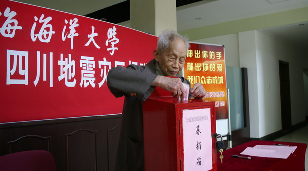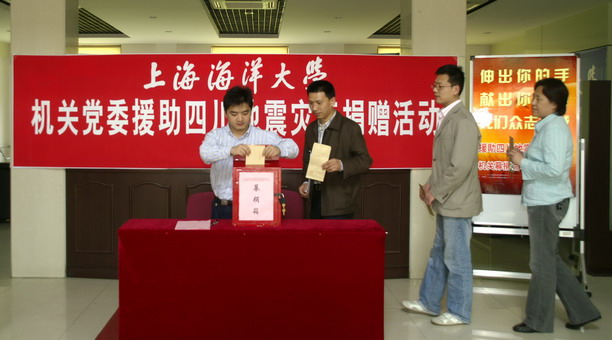 5月15日下午,校机关党委在行政楼底楼再次组织机关干部职工开展救灾捐款活动。在捐赠现场,前来捐款的人排起长龙,慷慨解囊。九十六岁高龄的学校老领导骆肇尧先生闻听捐款,也急匆匆赶来,为灾区人民捐款二千元;退休老领导陈坚、王克忠、曹德超、赵长春、乐美龙、李道恒、林辉煌等也先后送来善款合计3100元;人群中,既有普通的机关职工,也有离退休老同志;有的人因出差等原因不能现场捐赠,还特地委托身边同志代为捐助。