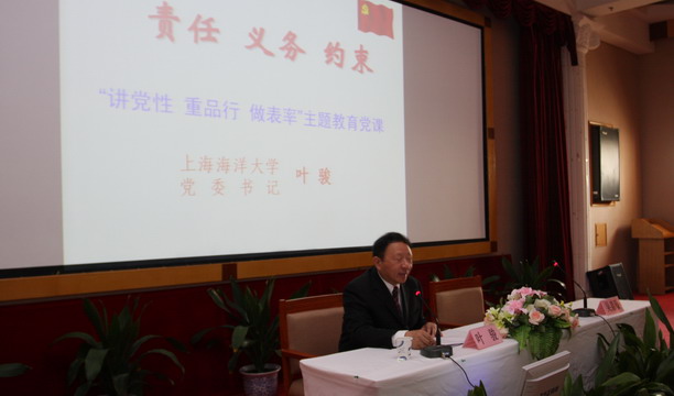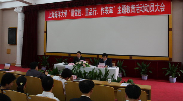 为了贯彻落实党的十七大精神,进一步巩固和发展党员先进性教育成果,5月20日我校在军工路校区科技大楼六楼报告厅召开“讲党性、重品行、作表率”主题教育活动动员大会。校党委书记叶骏为全体在职教工党员作了“责任、义务、约束”的主题教育党课,校党委副书记吴嘉敏作动员报告。