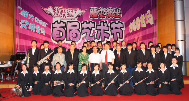 我校交响乐团成立于2001年,经过不断的发展、成熟,现在已经成长为拥有近百名团员,下设交响乐队、管乐队、轻音乐队、电声乐队的大学生演出团体。本次义演作为我校交响乐团首次专场演出,既是为四川灾区同胞献上一份爱心,也是几年来交响乐团训练的汇报演出。演出过程中一改以往交响乐团从头到尾一成不变的风格,通过不同团队、乐器的组合,为观众展示了各种演出形式和曲风,赢得观众阵阵喝彩。管弦乐合奏《爱的奉献》、《啤酒波尔卡》,铜管乐队的《太空堡垒》、《歌唱祖国》,展现了磅礴的气势;长笛与管乐队合作的《希望之音》、萨克司与管乐队合作的《蓝色之光》,有小提琴与钢琴合作的《一步之遥》,小提琴四重奏三首进行曲,悠扬动听,天籁之音。本学期成立的海之梦轻音乐团为大家带来了《一号皇庭》、《秋叶》、《世界之巅》等曲目,让全场观众为之沸腾。通过这些多变的形式和熟悉的曲目,使得交响乐这种高雅艺术更好的贴近了大学生的生活,使更多的同学熟悉、喜爱交响乐。