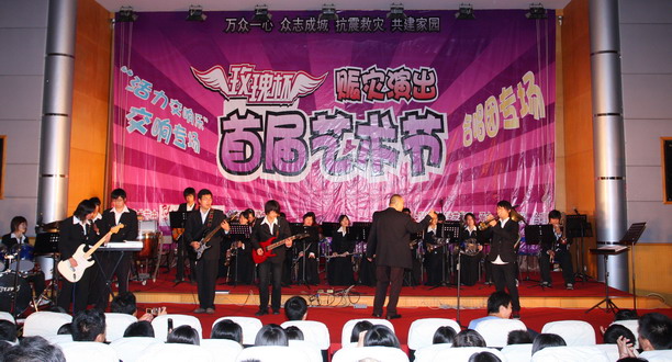 正值全国上下共同抗震救灾之际,我校大学生艺术节结合“万众一心、众志成城、抗震救灾、共建家园” 的赈灾主题隆重举办。