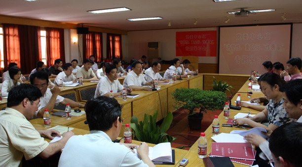 潘迎捷校长出席学习会并讲话。他说,2008年是我们工作最多、任务最重、困难最大的一年。我们面临内涵建设的各项任务,还面临搬迁的重任,为此,更需要全校上下要有高度的凝聚力和战斗力。“讲党性、重品行、作表率”的学习活动是确保我校各项工作顺利开展的一次思想动员,每个干部都要把这次学习活动的成效作为今年各项工作能否顺利完成的保证与措施。潘校长要求全体党员干部要结合更名后学校的发展定位,思考如何抓住机遇加快学校建设,思考我们的工作应如何来适应学校更名后的发展,并进一步思考如何调动全校师生、职工的积极性。各部门要做好本学期的各项工作,确保和推进搬迁工作的顺利开展。