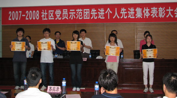会上,党委组织部部长助理韩振芳宣读了《关于表彰2007-2008学年上海海洋大学先进党员示范队、示范标兵、示范积极份子和优秀指导教师的决定》。经申报、推荐、评议、公示、审批,决定授予军工路校区第一党员示范队、学海路校区第一党员示范队等五个示范队为先进示范队称号,许强等43名示范队队员为示范标兵称号,于绍平等54名队员为示范积极分子称号,张暄等4名教师为优秀指导老师。