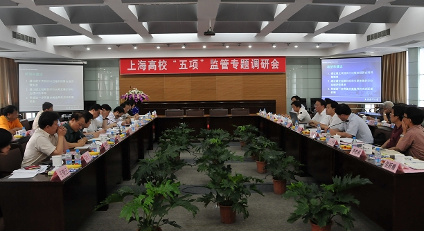6月18日上午,市科教党委副书记、纪工委书记吴捷,市教委纪检组长、市科教纪工委副书记阮显忠等到我校,就财务、科研经费、基建、采购、资产经营公司等五项监管工作进行调研,校长潘迎捷,校党委副书记、纪委书记吴嘉敏,副校长封金章,校长助理吴建农等出席调研会。调研会由阮显忠同志主持。