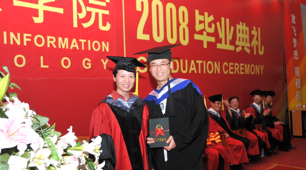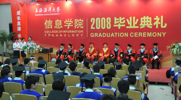 6月27日下午3:30,室外大雨倾盆,科技楼400人报告厅内却是一派欢腾景象,信息学院2008届全体本科毕业生毕业典礼正隆重举行。副校长封金章、校长助理吴建农、研究生部部长施志仪、招毕办主任张宗恩、学生处处长李兴华等领导应邀出席,信息学院院领导、家长代表、辅导员及2008届全体毕业生参加了典礼。典礼仪式由信息学院党委副书记李琼主持。