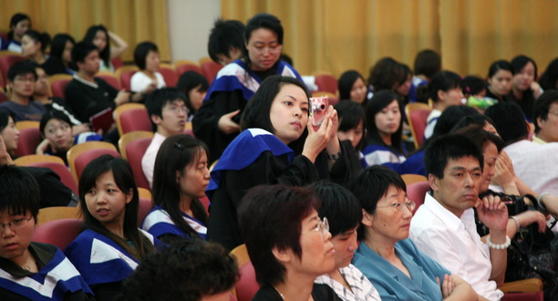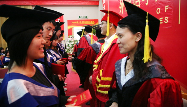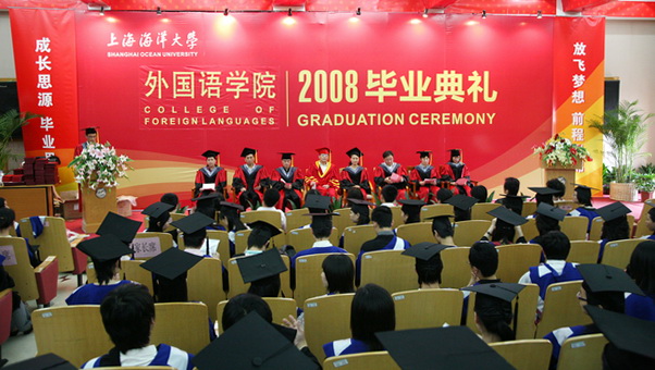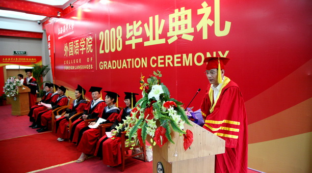 6月26号下午13:00,外国语学院2008届毕业生毕业典礼在军工路科技楼400人报告厅隆重举行。副校长程裕东、学生处处长李兴华、教务处副处长张帆等领导应邀出席,外国语学院2008届全体毕业生及班主任、家长代表、学院领导参加了典礼。典礼仪式由外国语学院党委副书记戴辉明主持。