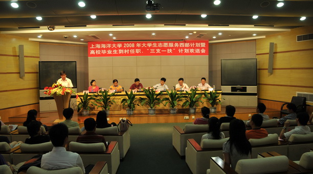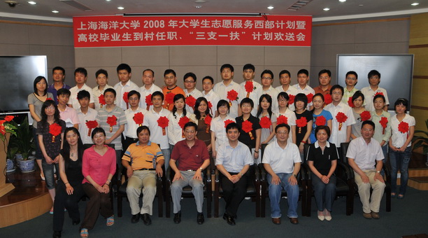 6月30日, 2008年大学生志愿服务西部计划暨上海市选聘高校毕业生到村任职、“三支一扶”计划欢送会在科技楼四楼召开。校党委副书记、副校长黄晞建,组织部部长汪之和,学生处处长李兴华,招生与毕业生就业工作办公室主任张宗恩、副主任朱克勇、校团委书记夏雅敏及各学院党委副书记出席了会议。