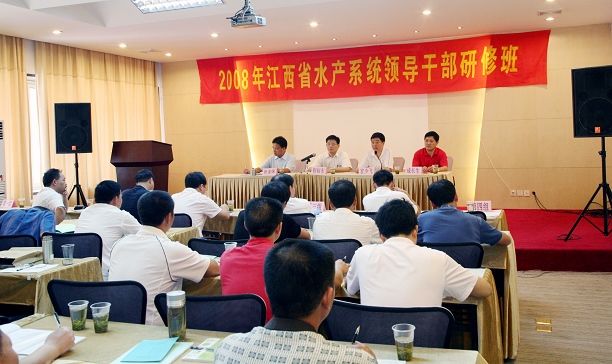 江西省水产系统干部研修班于7月13日—18日在海军海外宾馆举行。来自江西各县水产局局长,基层场、站负责人,科技人员企业经理等72名领导干部参加了本次学习,上海海洋大学程裕东副校长、江西省水产局官少飞局长、成教学院成长生院长出席开班典礼并作学习动员。