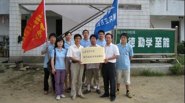 在乡团委何书记的陪同下,实践团到达当地的高山中学,与该校领导、部分教师和学生进行了座谈。实践团成员认真了解了了该校的师资、生源、教学以及升学情况,并就留守学生的教育问题及支教的具体安排与该校老师进行了交流。随后,举行了上海海洋大学的研究生社会实践基地的挂牌仪式,大别山区太平畈乡高山中学成为我校研究生社会实践的又一基地。在揭牌仪式上,实践团的同学们纷纷表示作为上海海洋大学的研究生愿意为大别山区的教育和新农村建设做出更多贡献。