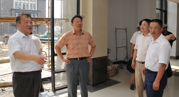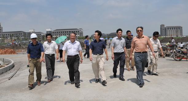 顶着烈日校领导在新校区建设现场视察