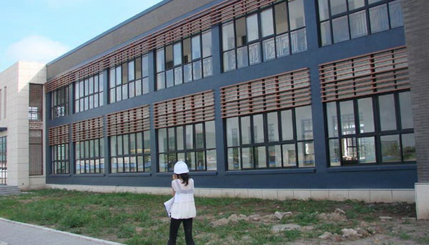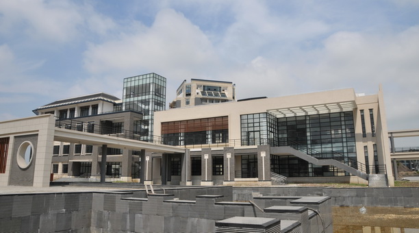 在新校区规划中,新校区力求以人为本,处处从方便师生的角度出发来开展工作。这一特点在教学楼的规划设计中得到了充分体现。教学楼与学生宿舍、食堂处于一个交通流线上,便于学生的学习、住宿和就餐;该楼紧邻图心信息中心、实验楼和学生事务中心,营造人性化的学生日常步行半径,等等。教学楼以灰色作为基调,营造清幽雅致的校园氛围。建筑中采用花窗等传统符号,体现江南水乡传统。在窗台装饰等处采用军工路校区部分老建筑的建筑符号,着力体现学校的历史内涵和文化积淀。建筑整体内敛稳重,延承勤朴忠实的校训精神。