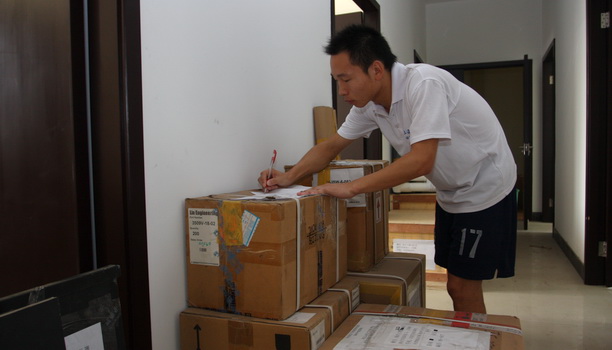 在全院师生共同努力下,海洋科学学院已完成物品打包,所有设备整装待发。图为工作人员在清查物品。