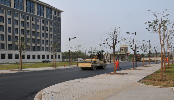 校园道路正在进行沥青铺摊。