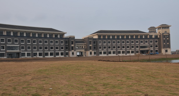 教学楼前已铺上草坪。