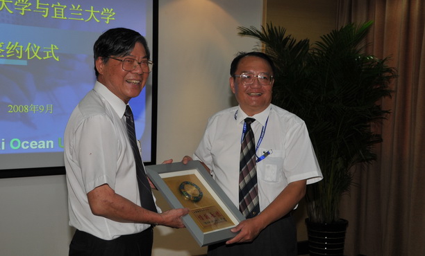 2008年9月23日,台湾宜兰大学江彰吉校长一行七人来到我校新校区进行交流访问,这是我校搬迁后迎来的第一批来访者。潘迎捷校长、吴嘉敏副书记、封金章副校长等领导出席了座谈交流。会议由封金章副校长主持,校办、统战部、科技处、水产与生命学院、工程学院和人文学院等相关部门领导出席了仪式。