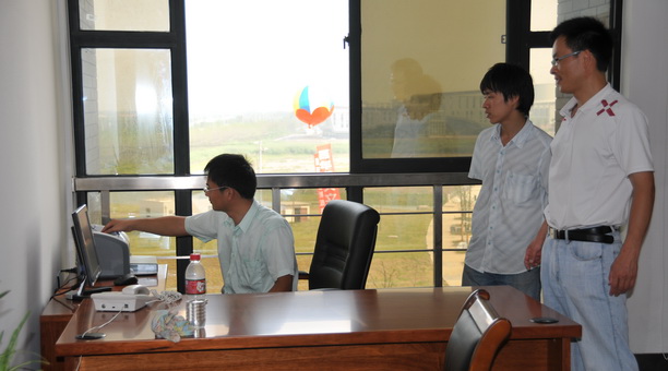 学院办公室同志正在调试网络。