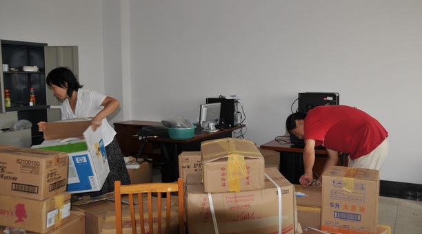 学院上下同心协力做好物品搬迁、整理工作。
