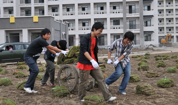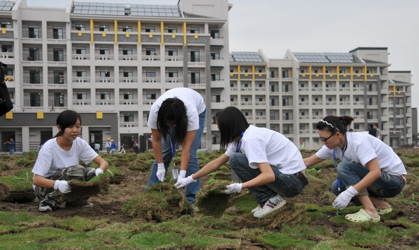 10月4日下午,在新校区即将迎来开学之际,我校学生处、团委老师带领近60余名学生志愿者参与新校区草坪的铺放。