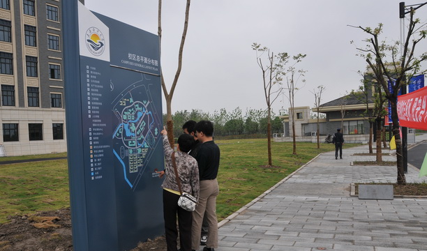 新校区户外导向标识系统由校总平面图(一级导向)、道路指示牌(二级导向)、学院/教学楼/宿舍分布平面图(三级导向)楼宇立体字(四级导向)构成,在设计及制作安装过程中充分考虑了防雨防风抗腐蚀等适应室外环境的因素;室内环境导向系统由大厅总索引、楼层导视图、科室牌构成。整个系统标识布点科学合理,信息内容全面连贯,指向表达清晰美观,建立起了没有迷失感的标识体系,可帮助师生及其他来访者顺利到达目的地。(宣传部 新校区建设办 后勤管理处)