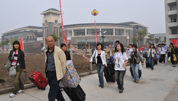 10月7日我校2008级新生报到首日。一大早,学校各部门各司其职,坚守岗位,认真工作,周到服务,各项迎新工作有序开展。 来自全国各地的莘莘学子带着喜悦、梦想、希望,来到我校新校区开始新的学习生活。