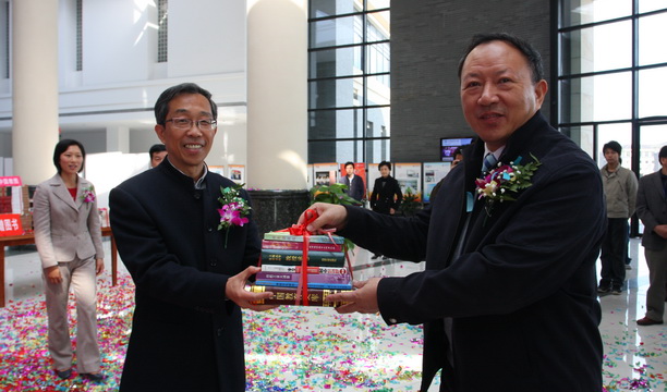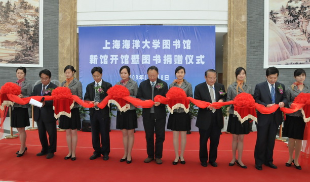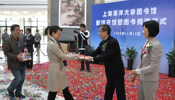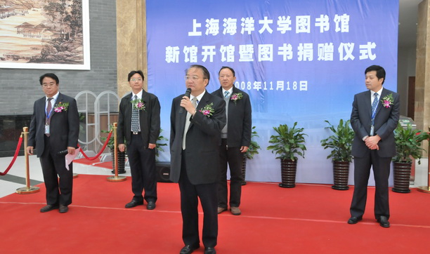 2008年11月18日上午,上海海洋大学纪念改革开放三十周年系列活动之一—图书馆新馆开馆暨图书捐赠仪式在图文信息中心一楼大厅隆重举行,仪式由黄硕琳副校长主持,校领导叶骏、潘迎捷、吴嘉敏、封金章,校长助理吴建农、各职能处室领导、各学院领导、全体图工委委员、水韵沙龙学生代表还有图书供应商代表参加了仪式。