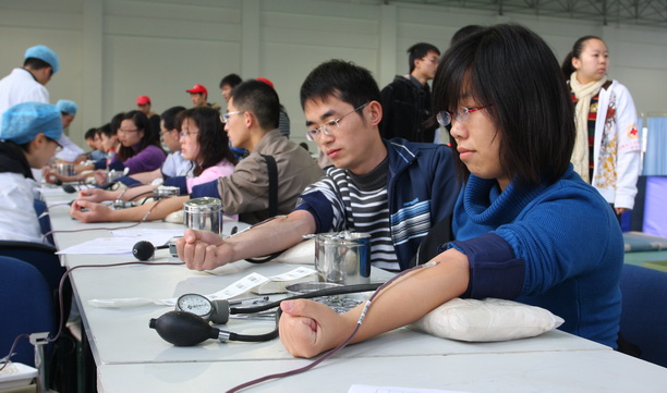 在无偿献血的队伍中,有学生,也有老师;有初次献血的,也有在校期间献血多次的;有毕业班同学把献血作为在校的纪念,也有把献血作为献给自己的生日礼物。信息学院张程冬老师自2005年始,每年都积极参加无偿献血活动,每次献血后,都顾不上休息就投入到工作中。今年,张老师在得知献血活动后,第一时间找到学院党委要求报名献血。考虑到张老师已连续献血3次,学院建议他明年再参加,但张老师说“我年轻,身体好,献血没问题。有段时间,上海血库不是缺A型血吗,我正好是A型,可以帮助别人是件很有意义的事。”张老师表示,只要身体可以,他将坚持下去,每年都参加无偿献血,救助那些需要帮助的人。