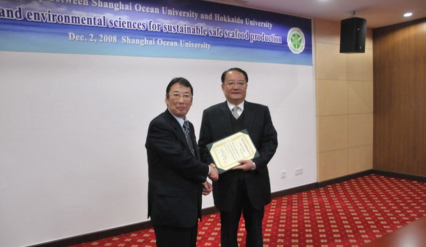 2008年12月2日,上海海洋大学与日本北海道大学第五届学术交流会在我校召开,此次的交流主题是“Marine life and environmental sciences for sustainable safe seafood production”。程裕东副校长主持了开幕式,潘迎捷校长和北海道大学水产学部学部长原 彰彦教授分别致开幕词。为了感谢潘迎捷校长对促进两校合作交流所作的贡献,北海道大学授予潘迎捷校长“特别荣誉教授”的称号,并颁发了荣誉证书。