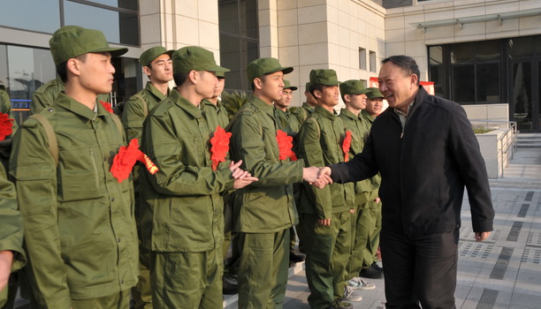 校党委书记叶骏与入伍学子一一握手,勉励大家为海大争光添彩。