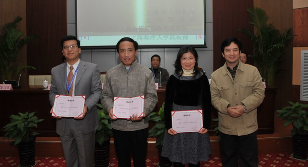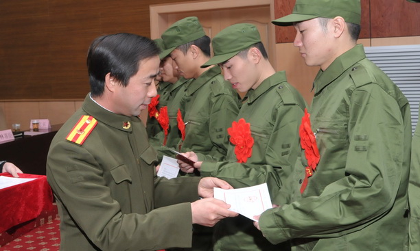 校党委副书记、副校长黄晞建为征兵先进单位颁发证书。