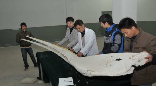 据了解,这根鲸骨是广东汕头的四、五个渔民,在南海海域捕捞作业时发现的。事后,渔民委托当地的林加林先生,把鲸骨送给高校作科研教学用,通过电子邮件与上海海洋大学取得联系。经过多次沟通了解后,学校全力支持并立即安排两位教师飞往汕头。两位教师经过现场察看,决定收藏这根鲸骨。经过一周辗转运输,12月中旬鲸骨抵达我校新校区。