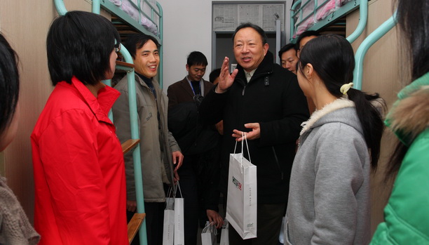 2008年12月25日,校党委书记叶骏在学生处负责人、各学院学生工作负责人陪同下来到学生宿舍,为家庭经济困难的学生送上学校的关怀和慰问,叶书记亲手给同学们送上保暖御寒物品,提醒同学们要注意天气变化并做好防寒保暖;同时关切地询问了同学们在新校区学习、生活的情况,要经常与家里保持联系,让父母安心;叶骏书记还希望学生树立自强、自立的信心,勤奋学习,克服困难,顺利完成学业。