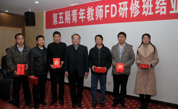 潘迎捷校长为各小组颁发了结业证书并作了重要讲话。他指出,2008年我校经历了更名与搬迁两件将载入史册大事,并基本交出了满意的答卷,为此包括新教师在内的全校师生员工付出了巨大的努力,同时2008年学校对发展定位作了进一步的梳理和规划,希望青年教师尽情发挥聪明才智,攻坚克难,为学校内涵建设、实现建设高水平特色大学的目标而共同努力。接着,潘校长以一名长者身份为青年教师提出了殷切希望:即在发展中要 “过好三关”、“树立三种意识”。“过好三关”——过好融入关:青年教师要尽快融入到学校发展大局、目标中来,找到发挥才智的切入点,明确工作任务和要求;过好工作关:要尽快适应远郊办学的环境,发挥拼搏、敬业、刻苦的精神;过好生活关:青年教师多刚走出校门,面对现实生活问题,要处理好工作和生活的关系,把更多的精力放在工作上。“树立三种意识”——要有感恩意识:改革开放三十周年以来,国家、社会、学校为青年教师成长提供了良好的环境,要心存感恩国家、感恩社会、感恩改革开发的思想,以学校为中心做好各项事业;要有珍惜意识:学校的发展是几代人的努力的结果,在良好的环境下,要学会珍惜、抓住机遇,从件件具体小事做起;要有责任意识:教师要对学生、社会负责,学校发展中还面临很多困难,树立信心和责任心弥足珍贵,青年教师要有与学校发展同甘共苦、共患难的思想。最后,潘校长指出,FD班为青年教师成长提供了很好的学习机会,希望大家以此为起点,在工作中艰苦奋斗,发挥潜能,做出贡献,实现价值,证明选择海大是正确的选择。