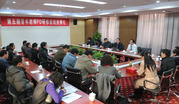 12月30日,我校在行政楼104会议室举行第五期青年教师FD研修班结业典礼,校长潘迎捷、人事处处长郑卫东、工会专职副主席朱镜、教务处副处长陈慧、人事处副处长程彦楠及本期FD班所有学员出席了结业典礼,典礼由郑卫东处长主持。