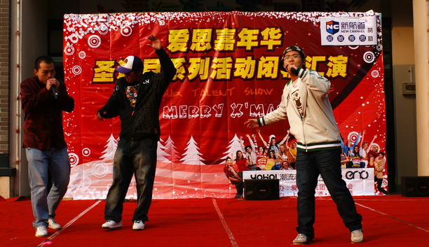 凯歌高奏辞08,昂首阔步迎09。12月30日下午,爱恩学院团委学生会在周周演舞台广场举办“爱恩学院嘉年华圣诞月“系列活动闭幕汇演。